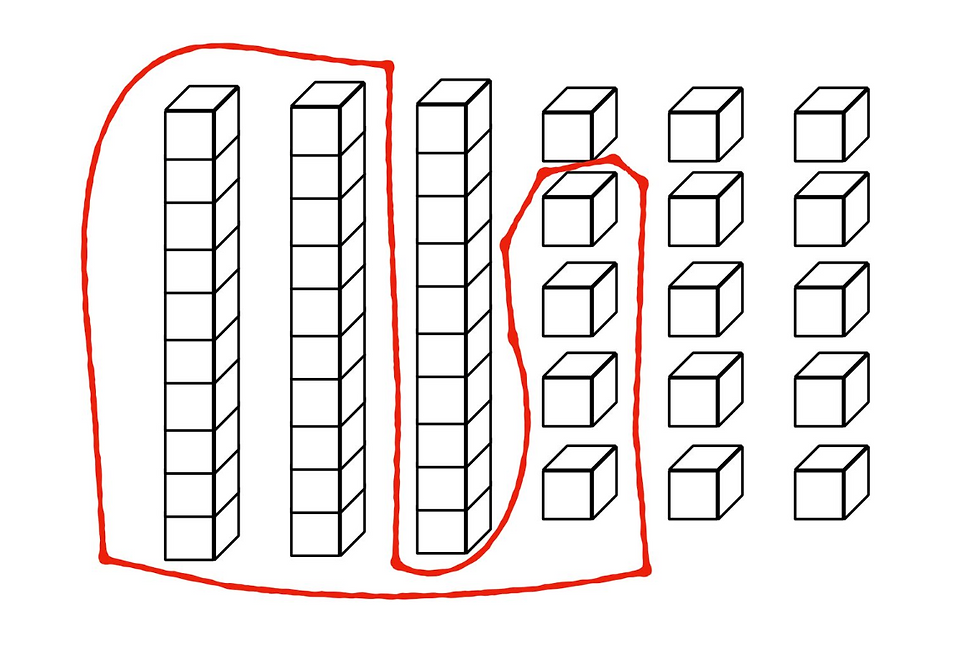 Doesn’t seem incorrect, but the teacher docked points. Why? He circled the wrong 24 cubes. This is what she expected of him to circle: